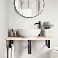 The wall mounted basin shelf securely attaches to the wall, providing an elegant and space-saving solution for your bathroom. Sturdy and long-lasting: This basin shelf is combined with a steel structure and a solid beech wood top, making it sturdy, stable, and long-lasting. Space-saving: The floating basin shelf has ample space to store creams and small items. Thanks to the rectangular shape, you can hang towels or other things on the support to save space. Easy to use: The countertop comes undrilled to allow the basin to be mounted on the left, right, or in the centre, depending on your room's requirements. Thanks to the pre-drilled holes in the holder, it can be easily assembled with the tabletop and mounted on the wall. Wide applications: Thanks to its modern design, it provides additional space for various types of bathrooms. Good to know:Screws are not included, you can purchase the screws separately based on the information provided below. Wall attachment: 2 pcs M8 expansion screws per bracket Wooden top: 2 pcs M5x18 screws (T=2) or 2 pcs M5x20 screws (T=2,5/4cm) per bracket