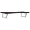 The wall mounted basin shelf securely attaches to the wall, providing an elegant and space-saving solution for your bathroom. Sturdy and long-lasting: This basin shelf is combined with a steel structure and a solid oak wood top, making it sturdy, stable, and long-lasting.Space-saving: The floating basin shelf has ample space to store creams and small items. Thanks to the trapezium shape, you can hang towels or other things on the support to save space.Easy to use: The countertop comes undrilled to allow the basin to be mounted on the left, right, or in the centre, depending on your room's requirements. Thanks to the pre-drilled holes in the holder, it can be easily assembled with the tabletop and mounted on the wall.Wide applications: Thanks to its modern design, it provides additional space for various types of bathrooms. Good to know:Screws are not included, you can purchase the screws separately based on the information provided below.Wall attachment: 2 pcs M8 expansion screws per bracketWooden top: 2 pcs M5x18 screws (T=2) or 2 pcs M5x20 screws (T=2,5/4cm) per bracketAs a natural product, wood may show knots and imperfections that we fill with black fillings to ensure a smooth appearance.