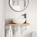 The wall mounted basin shelf securely attaches to the wall, providing an elegant and space-saving solution for your bathroom. Sturdy and long-lasting: This basin shelf is combined with a steel structure and a solid oak wood top, making it sturdy, stable, and long-lasting. Space-saving: The floating basin shelf has ample space to store creams and small items. Thanks to the rectangular shape, you can hang towels or other things on the support to save space. Easy to use: The countertop comes undrilled to allow the basin to be mounted on the left, right, or in the centre, depending on your room's requirements. Thanks to the pre-drilled holes in the holder, it can be easily assembled with the tabletop and mounted on the wall. Wide applications: Thanks to its modern design, it provides additional space for various types of bathrooms. Good to know:Screws are not included, you can purchase the screws separately based on the information provided below. Wall attachment: 2 pcs M8 expansion screws per bracket Wooden top: 2 pcs M5x18 screws (T=2) or 2 pcs M5x20 screws (T=2,5/4cm) per bracket