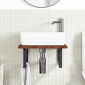 The wall mounted basin shelf securely attaches to the wall, providing an elegant and space-saving solution for your bathroom. Sturdy and long-lasting: This basin shelf is combined with a steel structure and a solid oak wood top, making it sturdy, stable, and long-lasting. Space-saving: The floating basin shelf has ample space to store creams and small items. Thanks to the rectangular shape, you can hang towels or other things on the support to save space. Easy to use: The countertop comes undrilled to allow the basin to be mounted on the left, right, or in the centre, depending on your room's requirements. Thanks to the pre-drilled holes in the holder, it can be easily assembled with the tabletop and mounted on the wall. Wide applications: Thanks to its modern design, it provides additional space for various types of bathrooms. Good to know:Screws are not included, you can purchase the screws separately based on the information provided below. Wall attachment: 2 pcs M8 expansion screws per bracket Wooden top: 2 pcs M5x18 screws (T=2) or 2 pcs M5x20 screws (T=2,5/4cm) per bracket