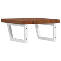 The wall mounted basin shelf securely attaches to the wall, providing an elegant and space-saving solution for your bathroom. Sturdy and long-lasting: This basin shelf is combined with a steel structure and a solid oak wood top, making it sturdy, stable, and long-lasting. Space-saving: The floating basin shelf has ample space to store creams and small items. Thanks to the trapezium shape, you can hang towels or other things on the support to save space. Easy to use: The countertop comes undrilled to allow the basin to be mounted on the left, right, or in the centre, depending on your room's requirements. Thanks to the pre-drilled holes in the holder, it can be easily assembled with the tabletop and mounted on the wall. Wide applications: Thanks to its modern design, it provides additional space for various types of bathrooms. Good to know:Screws are not included, you can purchase the screws separately based on the information provided below. Wall attachment: 2 pcs M8 expansion screws per bracket Wooden top: 2 pcs M5x18 screws (T=2) or 2 pcs M5x20 screws (T=2,5/4cm) per bracket