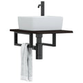 The wall mounted basin shelf securely attaches to the wall, providing an elegant and space-saving solution for your bathroom. Sturdy and long-lasting: This basin shelf is combined with a steel structure and a solid oak wood top, making it sturdy, stable, and long-lasting.Space-saving: The floating basin shelf has ample space to store creams and small items. Thanks to the rectangular shape, you can hang towels or other things on the support to save space.Easy to use: The countertop comes undrilled to allow the basin to be mounted on the left, right, or in the centre, depending on your room's requirements. Thanks to the pre-drilled holes in the holder, it can be easily assembled with the tabletop and mounted on the wall.Wide applications: Thanks to its modern design, it provides additional space for various types of bathrooms. Good to know:Screws are not included, you can purchase the screws separately based on the information provided below.Wall attachment: 2 pcs M8 expansion screws per bracketWooden top: 2 pcs M5x18 screws (T=2) or 2 pcs M5x20 screws (T=2,5/4cm) per bracketAs a natural product, wood may show knots and imperfections that we fill with black fillings to ensure a smooth appearance.