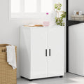 This Freestanding Bathroom Storage Cabinet is all about style and practicality, perfect for jazzing up any modern bathroom. Its sleek rectangular shape and smooth finish strike the right balance between simple and functional, making it a must-have for anyone who loves both. Made from engineered wood, it’s a handy storage solution that doubles up as a trendy feature, bringing a contemporary vibe to any space. The cabinet’s clever design keeps your toiletries, towels, and other essentials neat and tidy. Materials: Built from tough engineered wood that can handle a bit of moisture, making sure it lasts even in steamy bathrooms. The smooth finish not only looks great but also makes cleaning a breeze. Included Components: It comes with solid shelves, offering a straightforward way to store your stuff. Plus, the finished back keeps it looking smart from all angles, so you can place it anywhere you fancy. Features / Function / Design: With a nifty hinge door system, getting to your things is super easy and secure. The bar handles and bun foot legs add to the cabinet’s sleek modern design, making it a great fit for any contemporary bathroom style. Recommended Uses: This cabinet is perfect for the bathroom but can also be used in spots like utility or laundry rooms, showcasing its versatility. Its spacious design works well for everything from toiletries to storing household items away. Care & Maintenance: Keeping it looking fab is a piece of cake. Just wipe it down with a damp cloth to ditch the dust and grime, making it easy to keep it looking good for ages.