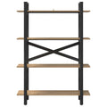 The Industrial Bookshelf is an ideal blend of style and functionality, designed to suit a variety of spaces, from cozy home offices to chic urban lounges. With its rectangular shape and freestanding design, this bookshelf offers a robust structural aesthetic while providing ample room for books, decor, and more. Its industrial flair, inspired by the charm of warehouses and urban lofts, ensures that it stands out as a statement piece yet seamlessly integrates into your room's decor. Engineered Wood Shelves: This bookshelf boasts strong and visually appealing shelves crafted from engineered wood, designed for both durability and style. Engineered wood is chosen for its excellent load-bearing capabilities, ensuring it supports even the heaviest tomes with ease over time. Sturdy Steel Frame: The steel frame forms a robust structure, lending a sleek and modern industrial look. The minimalist rectangular steel supports provide consistent stability and strength, allowing users to have confidence in loading up the shelves to their full potential. Board Shelves Design: With practical board shelves, this unit couples utility with simplicity, offering straightforward placement for all your belongings. These shelves make the perfect surface for displaying art pieces, plants, or treasured collections, transforming the shelf into a personalized showcase. Adjustable Levelers: Equipped with adjustable feet, the bookshelf adapts to uneven floors, providing a stable foundation. This feature assures balance, assuring you of a smooth, wobble-free experience even on less-than-flat surfaces. Care Instructions: Easy maintenance with practical care instructions: Simply wipe with a dry cloth to maintain its shine, while avoiding harsh chemicals that may wear the finish over time. This simple care ensures long-lasting beauty and charm throughout years of use.