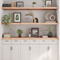 Do you need more storage options but don't have any spare space? This wall shelf in rustic style is the perfect solution. Durable construction: The wall shelf is made of solid oak wood, which is a beautiful natural material. Oak wood has a medium brown colour and a dense grain, contributing to its unique look. Due to the hinge design, it can be folded and stored in narrow spaces.Versatile applications: Besides a shelf, this storage shelf can be combined with different bases according to your needs. It can be used as a bathroom top, cabinet top, desk top, table top etc.Untreated surface: As the wooden shelf is crafted from solid oak wood with no finish, you can keep its natural colour but also can paint or lacquer it as per your preference.Handmade with live edge: This shelf board is handmade with a live edge. Due to that the knots, cracks, slightly curved shapes, and colour tones are part of the oak wood, every piece of shelf has its own unique character to display. The delivery is random, ensuring the exclusivity and individuality of your product. Good to know:As a natural product, wood may show knots and imperfections that we fill with black fillings to ensure a smooth appearance.