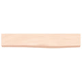 Do you need more storage options but don't have any spare space? This wall shelf in rustic style is the perfect solution. Durable construction: The wall shelf is made of solid oak wood, which is a beautiful natural material. Oak wood has a medium brown colour and a dense grain, contributing to its unique look.Versatile applications: Besides a shelf, this storage shelf can be combined with different bases according to your needs. It can be used as a bathroom top, cabinet top, desk top, table top etc.Untreated surface: As the wooden shelf is crafted from solid oak wood with no finish, you can keep its natural colour but also can paint or lacquer it as per your preference.Handmade with live edge: This shelf board is handmade with a live edge. Due to that the knots, cracks, slightly curved shapes, and colour tones are part of the oak wood, every piece of shelf has its own unique character to display. The delivery is random, ensuring the exclusivity and individuality of your product. Good to know:As a natural product, wood may show knots and imperfections that we fill with black fillings to ensure a smooth appearance.