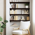 Do you need more storage options but don't have any spare space? This wall shelf in rustic style is the perfect solution. Durable construction: The wall shelf is made of solid oak wood, which is a beautiful natural material. Oak wood has a medium brown colour and a dense grain, contributing to its unique look.Versatile applications: Besides a shelf, this storage shelf can be combined with different bases according to your needs. It can be used as a bathroom top, cabinet top, desk top, table top etc.Treated surface: The wooden shelf has been treated with dark paint so it is ready for use as an additional finish is not required.Handmade with live edge: This shelf board is handmade with a live edge. Due to that the knots, cracks, slightly curved shapes, and colour tones are part of the oak wood, every piece of shelf has its own unique character to display. The delivery is random, ensuring the exclusivity and individuality of your product. Good to know:As a natural product, wood may show knots and imperfections that we fill with black fillings to ensure a smooth appearance.