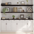Do you need more storage options but don't have any spare space? This wall shelf in rustic style is the perfect solution. Durable construction: The wall shelf is made of solid oak wood, which is a beautiful natural material. Oak wood has a medium brown colour and a dense grain, contributing to its unique look. Due to the hinge design, it can be folded and stored in narrow spaces.Versatile applications: Besides a shelf, this storage shelf can be combined with different bases according to your needs. It can be used as a bathroom top, cabinet top, desk top, table top etc.Treated surface: The wooden shelf has been treated with dark paint so it is ready for use as an additional finish is not required.Handmade with live edge: This shelf board is handmade with a live edge. Due to that the knots, cracks, slightly curved shapes, and colour tones are part of the oak wood, every piece of shelf has its own unique character to display. The delivery is random. Good to know:As a natural product, wood may show knots and imperfections that we fill with black fillings to ensure a smooth appearance.