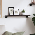 Do you need more storage options but don't have any spare space? This wall shelf in rustic style is the perfect solution. Durable construction: The wall shelf is made of solid oak wood, which is a beautiful natural material. Oak wood has a medium brown colour and a dense grain, contributing to its unique look.Versatile applications: Besides a shelf, this storage shelf can be combined with different bases according to your needs. It can be used as a bathroom top, cabinet top, desk top, table top etc.Treated surface: The wooden shelf has been treated with dark paint so it is ready for use as an additional finish is not required.Handmade with live edge: This shelf board is handmade with a live edge. Due to that the knots, cracks, slightly curved shapes, and colour tones are part of the oak wood, every piece of shelf has its own unique character to display. The delivery is random, ensuring the exclusivity and individuality of your product. Good to know:As a natural product, wood may show knots and imperfections that we fill with black fillings to ensure a smooth appearance.