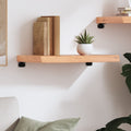 Do you need more storage options but don't have any spare space? This wall shelf in rustic style is the perfect solution. Durable construction: The wall shelf is made of solid oak wood, which is a beautiful natural material. Oak wood has a medium brown colour and a dense grain, contributing to its unique look.Versatile applications: Besides a shelf, this storage shelf can be combined with different bases according to your needs. It can be used as a bathroom top, cabinet top, desk top, table top etc.Treated surface: The wooden shelf has been varnished so it is ready for use as an additional finish is not required.Handmade with live edge: This shelf board is handmade with a live edge. Due to that the knots, cracks, slightly curved shapes, and colour tones are part of the oak wood, every piece of shelf has its own unique character to display. The delivery is random, ensuring the exclusivity and individuality of your product. Good to know:As a natural product, wood may show knots and imperfections that we fill with black fillings to ensure a smooth appearance.
