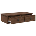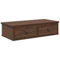 This wall shelf with drawers is meant to be a decorative as well as a practical extension to your home decor. Stable and durable material: Engineered wood is a durable and stable material with a smooth surface that is resistant to moisture, warping, and splitting, making it a reliable choice for various projects.Ample storage space: The wall cabinet offers handy storage space for keeping your various daily essentials well organised and within easy reach.Wall-mounted function: The floating bedside cabinet doesn't take up any floor space. You can hang it on the wall easily.Displaying function: You can also place your favourite photos, decorations, or flowers on top of the cabinet to enrich your life.Wide applications: Thanks to its timeless design, this wall cabinet effortlessly complements your decor and can be used in the living room, bedroom, and more. Good to know:Screws and plugs for inside the wall are not included. We advise to find and use screws and plugs suitable specifically for your walls. If you're not sure, you can consult with a professional. Please read and follow each step of the instructions.