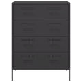 This sturdy sideboard with an industrial style makes a timeless addition to your living room or bedroom. Robust and stable frame: Steel is strong, stable, and durable, making it an ideal choice for a wide range of applications, from furniture manufacturing to construction.Ample storage space: This sideboard cabinet has 4 drawers, which provides ample storage space for keeping your various daily essentials well-organised and within easy reach. Easy to clean: The cupboard is easy to clean with a damp cloth and requires less maintenance.Warning:To prevent it from tipping over, this product must be used with the provided wall attachment device.