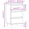 This trendy sideboard, featuring a timeless look, is meant to be an excellent addition to your home. Durable material: The engineered wood is of exceptional quality with smooth surface and also features strength, stability and resistance to moisture.Ample storage space: The sideboard cabinet has 3 drawers, providing ample storage space for keeping your various daily essentials well organised and within easy reach.Displaying function: The top of the cupboard is perfect for placing potted plants, framed photos and other decorative items.Metal legs: The metal legs add a modern and calm style to your interior while ensuring stability. Warning:To prevent it being overturned, this product must be used with the provided wall attachment device.