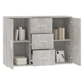 This sideboard, featuring a minimalist design, makes a practical and highly decorative addition to your home. Durable material: The engineered wood is of exceptional quality with smooth surface and also features strength, stability and resistance to moisture.Ample storage space: With 2 doors and 3 drawers, the cabinet provides ample storage space for books, multimedia appliances, and other items.Practical top: The sturdy tabletop is ideal for displaying decorative objects, photo frames, or potted plants. Note:Each product comes with an assembly manual in the box for easy assembly. Warning:In order to prevent overturning, this product must be used with the wall attachment device provided.