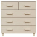 This wooden sideboard makes a decorative and practical addition to your decor. This drawer cabinet is made of solid pinewood, making it stable and sturdy. The highboard has 5 smooth sliding drawers, providing ample storage space for keeping your various daily essentials well organised and within easy reach. Additionally, the sturdy tabletop is perfect for displaying decorative objects, photo frames, and potted plants.