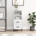 This modern sideboard, featuring a timeless look, is meant to be an excellent addition to your home. Durable material: The engineered wood is of exceptional quality with smooth surface and also features strength, stability and resistance to moisture. Metal legs: The metal legs add a modern and calm style to your interior while ensuring stability. Ample storage space: This sideboard cabinet is designed with 2 drawers and 2 compartments to keep things organised and within easy reach. Stable and sturdy top: The top of the cupboard is perfect for displaying your decorative items, picture frames, and potted plants. Warning:To prevent it being overturned, this product must be used with the provided wall attachment device.