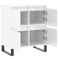 This trendy sideboard, featuring a timeless look, is meant to be an excellent addition to your home. Durable material: The engineered wood is of exceptional quality with smooth surface and also features strength, stability and resistance to moisture. Made of engineered wood, the storage cabinet is easy to clean with a damp cloth.Ample storage space: The buffet offers ample storage space for keeping your various daily essentials well organised and within easy reach.Displaying function: The top of the sideboard cabinet is perfect for displaying your decorative items, picture frames, and potted plants.Iron legs: The iron legs of the side cabinet ensure sturdiness and stability. Warning:To prevent it being overturned, this product must be used with the provided wall attachment device.