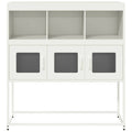This sideboard offers both decorative appeal and practical storage, making it a perfect addition to your home. Stable and long-lasting frame: Steel is strong, stable, and durable, making it an ideal choice for a wide range of applications, from furniture manufacturing to construction.Practical handles: The storage cabinet comes with handles that provide a comfortable grip, helping you open and close the cabinet easily while adding extra beauty.Ample storage space: The buffet offers ample storage space for dining essentials and other household items to keep them organised and within reach.Metal feet: The metal feet add a calm style to your interior while ensuring stability.Wide applications: You can use this side cabinet as a bathroom cabinet or kitchen cupboard, or just as an elegant storage cabinet in bedrooms, powder rooms, entryways, corridors and offices, dining rooms, and other living areas. Warning:To prevent it from tipping over, this product must be used with the provided wall attachment device.