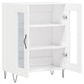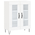 This classic sideboard, featuring a timeless look and glass design, is meant to be an excellent addition to your home. Durable material: The engineered wood is of exceptional quality with smooth surface and also features strength, stability and resistance to moisture. Made of engineered wood, the cabinet is easy to clean with a damp cloth.Ample storage space: The sideboard cabinet offers ample storage space for keeping your various daily essentials well organised and within easy reach.Glass design: The glass design highlights the cupboard's elegance and allows you to display your favourite things.Displaying function: The top of the storage cabinet is great for displaying your decorative items, photo albums or small plants.Metal feet: The metal feet add a calm style to your interior while ensuring stability. Warning:To prevent it being overturned, this product must be used with the provided wall attachment device.