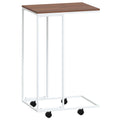 This C-shaped side table, with timeless and decorative design, is a practical and stylish addition to your current living space. Premium material: The engineered wood is of exceptional quality with smooth surface and also features strength, stability and resistance to moisture. Made of engineered wood, the top of the coffee table is easy to clean.Strong and sturdy structure: The iron frame of the sofa table ensures sturdiness and stability.User-friendly design: The C-shaped design and four wheels make it easy to place the tea table near the sofa, bed or any spot you prefer.