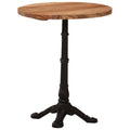 Add a touch of romantic atmosphere with this wooden bistro table! The tabletop is made of solid acacia wood, making it sturdy and stable. The cast iron base provides stability and sturdiness for it. This dinner table even serves as a table to place your drink or any other necessity you need close at hand. Important note: Colours and grains vary from piece to piece, making each piece unique. The delivery is random as well.