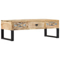 Featuring a rustic charm, this stunning wooden coffee table will make a timeless addition to your decor. Its solid table top provides a stable and secure surface, on which you can place drinks, vases, fruit bowls and other ornaments. This practical coffee table will be perfect for placing multimedia appliances, books, magazines, or small items you'd like to keep within reach. Thanks to the sturdy galvanised steel legs and mango wood material, the table is exceedingly durable. Mango wood is a dense and robust hardwood which has beautiful brown or golden streaks and contours on its surface. Every step of the process is carried out with the greatest care, be it polishing, painting or lacquering. Relax and enjoy a great time with your family and friends around this unique coffee table! Important note: Colours vary from piece to piece, making each piece unique. The delivery is random, ensuring the exclusivity and individuality of your product.