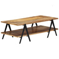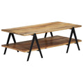 Featuring a rustic charm, this stunning wooden coffee table will make a timeless addition to your decor. Its solid table top provides a stable and secure surface, on which you can place drinks, vases, fruit bowls and other ornaments. This practical coffee table with 2 layers will be perfect for placing multimedia appliances, books, magazines, or small items you'd like to keep within reach. Thanks to the sturdy construction and mango wood material, the table is exceedingly durable. Mango wood is a dense and robust hardwood which has beautiful brown or golden streaks and contours on its surface. Every step of the process is carried out with the greatest care, be it polishing, painting or lacquering. Relax and enjoy a great time with your family and friends around this unique coffee table! Important note: Colours vary from piece to piece, making each piece unique. The delivery is random, ensuring the exclusivity and individuality of your product.
