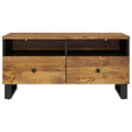 Are you looking for a coffee table for your leisure time? Look no further than this coffee table, which gives a unique visual experience to the area. Solid mango wood: This side table is made of solid mango wood, a hardwood with dense grains. Solid mango wood not only has the strength to bear the weight but also stands the wear and tear of time.Spacious storage: This sofa table features 2 open compartments and 2 drawers, providing ample storage space for keeping your essential items organised and within reach.Sturdy tabletop: The top of the living room table provides a secure surface to place snacks, drinks, vases, fruit bowls, or other decorative items.Stable legs: The iron legs of this couch table ensure sturdiness and stability. Good to know:To make assembly as easy as possible, each product is delivered with a manual.Colours and grains vary per furniture item, making each piece unique. The delivery is random, ensuring the exclusivity and individuality of your product.