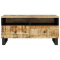 Are you looking for a coffee table for your leisure time? Look no further than this coffee table, which gives a unique visual experience to the area. Solid mango wood: This side table is made of solid mango wood, a hardwood with dense grains. Solid mango wood not only has the strength to bear the weight but also stands the wear and tear of time.Spacious storage: This sofa table features 2 open compartments and 2 drawers, providing ample storage space for keeping your essential items organised and within reach.Sturdy tabletop: The top of the living room table provides a secure surface to place snacks, drinks, vases, fruit bowls, or other decorative items.Stable legs: The iron legs of this couch table ensure sturdiness and stability. Good to know:To make assembly as easy as possible, each product is delivered with a manual.Colours and grains vary per furniture item, making each piece unique. The delivery is random, ensuring the exclusivity and individuality of your product.