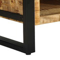 Relax and enjoy entertaining your family and friends around this coffee table! Robust and stable material: Solid mango wood, a robust tropical hardwood, is highly favoured for furniture making for its exceptional durability and strength. Its beautiful wood grains make every piece of furniture slightly different from the next.Ample storage space: This side table provides ample storage space for keeping your magazines, books, DVDs, remote control and other small items well-organised and within reach.Stable and sturdy tabletop: The sturdy tabletop is ideal for placing your drinks or any other necessities you need close at hand.With legs: Elevated legs make it easier to clean underneath the cabinet, maintaining a tidy appearance and ensuring better airflow around electronic equipment. Good to know:Each item is unique with variations in colours and grains. The delivery is random, ensuring the exclusivity and individuality of your product.