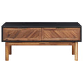 Bring nature indoors with this unique and rustic wooden coffee table! This beautiful wooden table perfectly fits in any room in your house. The wooden accent table is made of solid acacia wood in a diagonal pattern with a beautiful finish to give a refined look. The side table has two drawers, providing ample storage space for magazines, books, multimedia appliances and other essentials. And the large tabletop is even perfect for placing drinks, vases, fruit bowls or ornaments. The gold aluminium handles also make this couch table stylish.