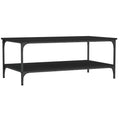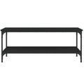 Add a touch of elegance to your living room with this stylish coffee table. Sturdy material: The engineered wood is of exceptional quality with smooth surface and also features strength, stability and resistance to moisture.Ample storage space: This side table has shelves, offering ample storage space to keep your essentials well organised and within reach.Sturdy tabletop: The sturdy tabletop is perfect for placing your drinks, food and other decorative items.Stable frame: The metal frame ensures sturdiness and stability.