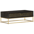 Our retro-style wooden coffee table features a black and gold finish and will add a touch of luxury to your living space. The couch side table is made of solid mango wood which is stable, durable and beautiful, and the craftsmanship adds to its spectacular retro style. Every step of the process is carried out with the greatest care, be it polishing, painting or lacquering. The craftsmanship and the beautiful wood grains make every piece of furniture unique and slightly different from the next. This side table has a sturdy and stable surface, on which you can place your drinks, foods, fruit baskets or ornaments. This coffee table is easy to assemble. Important note: The colours vary from piece to piece, making each piece unique and slightly different from the next. The delivery is random, ensuring the exclusivity and individuality of your product.