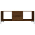Add a touch of elegance to your living room with this stylish coffee table. Durable material: The engineered wood is of exceptional quality with smooth surface and also features strength, stability and resistance to moisture.Ample storage space: This side table has 3 compartments, offering ample storage space to keep your essentials well-organised and within reach.Sturdy tabletop: The sturdy tabletop of the sofa table is perfect for placing your drinks, food and other decorative items.Practical door: Keep your space clutter-free by hiding small essentials behind the door of the living room table.Iron legs: The iron legs add a calm style to your interior while ensuring stability.