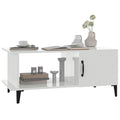 Are you looking for a coffee table for your leisure time? Look no further than this functional coffee table, which gives a unique visual experience to the area. Sturdy material: The engineered wood is of exceptional quality with smooth surface and also features strength, stability and resistance to moisture.Ample storage space: This side table has a spacious tabletop, a compartment and a shelf, which provide enough space for your magazines, drinks, remotes, vases, etc.Metal legs: The living room table features metal legs, which add an industrial and relaxed style to your interior while ensuring stability.Practical top: The top of the side table provides a secure surface to place snacks, drinks, vases, fruit bowls and other decorative items. Note:Each product comes with an assembly manual in the box for easy assembly.