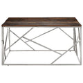 Combining functionality and beauty, this coffee table will be the focal point of your room. Solid sleeper wood top: The top of the side table provides a secure and ample surface to place snacks, drinks, vases, fruit bowls, or other decorative items.Sturdy and stable frame: The stainless steel frame of the living room table ensures sturdiness and stability.Easy maintenance: This accent table with stain-resistant surface is easy to wipe clean and you can effortlessly keep the table looking its best.Simple design: This sofa table has a simple and modern design that complements any room decor.