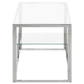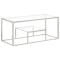 Combining functionality and beauty, this coffee table will be the focal point of your room. Glass top: The top of the side table provides a visible and ample surface to place snacks, drinks, vases, fruit bowls, or other decorative items.Sturdy and stable frame: The stainless steel frame of the living room table ensures sturdiness and stability.Easy maintenance: This accent table with stain-resistant surface is easy to wipe clean and you can effortlessly keep the table looking its best.Simple design: This sofa table has a simple and modern design that complements any room decor.