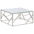 Combining functionality and beauty, this coffee table will be the focal point of your room. Glass top with white marble finish: The top of the side table provides a secure and ample surface to place snacks, drinks, vases, fruit bowls, or other decorative items. Sturdy and stable frame: The stainless steel frame of the living room table ensures sturdiness and stability. Easy maintenance: This accent table with stain-resistant surface is easy to wipe clean and you can effortlessly keep the table looking its best. Simple design: This sofa table has a simple and modern design that complements any room decor.