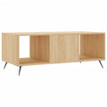 Add a touch of elegance to your living room with this stylish coffee table. Durable material: The engineered wood is of exceptional quality with smooth surface and also features strength, stability and resistance to moisture.Ample storage space: This side table has 3 compartments, offering ample storage space to keep your essentials well-organised and within reach.Sturdy tabletop: The sturdy tabletop of the sofa table is perfect for placing your drinks, food and other decorative items.Practical door: Keep your space clutter-free by hiding small essentials behind the door of the living room table.Iron legs: The iron legs add a calm style to your interior while ensuring stability.