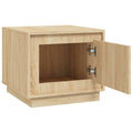 Add a touch of elegance to your living room with this stylish coffee table. Durable material: The engineered wood is of exceptional quality with smooth surface and also features strength, stability and resistance to moisture. Made of engineered wood, the side table is easy to clean with a damp cloth.Ample storage space: This sofa table offers ample storage space to keep your essentials well organised and within reach.Sturdy tabletop: The sturdy tabletop of the living room table is perfect for placing your drinks, food and other decorative items.Practical door: Keep your essentials free from dust by hiding them behind the door of this storage cabinet. Good to know:To make assembly as easy as possible, each product is delivered with a manual.The door can be installed on the left or right side.
