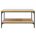 Add a touch of elegance to your living room with this stylish coffee table. Sturdy material: The engineered wood is of exceptional quality with smooth surface and also features strength, stability and resistance to moisture.Ample storage space: This side table has shelves, offering ample storage space to keep your essentials well organised and within reach.Sturdy tabletop: The sturdy tabletop is perfect for placing your drinks, food and other decorative items.Stable frame: The metal frame ensures sturdiness and stability.