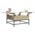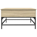 Add a touch of elegance to your living room with this stylish coffee table. Durable material: The engineered wood is of exceptional quality with smooth surface and also features strength, stability and resistance to moisture.Ample storage space: The sofa table has ample storage space beneath the top for 2 hidden compartments, so you can store your often-used items and keep them away from dust.Displaying function: The sturdy tabletop of the living room table is perfect for placing your drinks, food and other decorative items.Adjustable feet: The centre table is equipped with 4 adjustable feet that can protect your floor from scratches and keep it stable on the uneven floor.Sturdy frame: The metal frame of this couch table ensures sturdiness and stability.