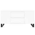 Add a touch of elegance to your living room with this stylish coffee table. Durable material: The engineered wood is of exceptional quality with smooth surface and also features strength, stability and resistance to moisture. Made of engineered wood, the side table is easy to clean with a damp cloth.Ample storage space: The sofa table has 2 drawers and 4 compartments, offering ample storage space to keep your essentials well organised and within reach.Sturdy tabletop: The sturdy tabletop is perfect for placing your drinks, food and other decorative items.Metal legs: The metal legs add a modern and calm style to your interior while ensuring stability. Warning:To prevent it being overturned, this product must be used with the provided wall attachment device.
