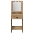 This dressing table is a stylish piece meant for modern bedrooms. It's crafted with a neat, minimalist design that makes the most of simplicity and usefulness. Its rectangular shape and smooth finish make it a lovely focal point, fitting in with different bedroom styles. The built-in LED lights boost its charm and are super handy, making grooming a breeze. Engineered Wood Construction: This dressing table is made from dependable engineered wood, which is strong and less likely to warp over time. Its sturdy build means you can count on it for everyday use, making it both a useful and stylish addition to your bedroom decor. Embedded Plane Mirror: A flat mirror is fitted into the table, making it easy to apply makeup or do your hair. The mirror is spacious enough to give you a true reflection for all your grooming needs, helping you nail your look every day. Modern LED Lighting: The built-in LED lights brighten everything up, perfect for those tasks needing precision, like makeup application. Their soft glow adds a touch of elegance and helps create a contemporary and inviting vibe. Ample Storage Options: Store your personal care products and cosmetics easily with roomy drawers. The thoughtful design keeps everything you need within reach, so you can avoid clutter and stay organised. Easy Care Instructions: Keeping this piece clean is a doddle; just a quick wipe with a damp cloth is all you need to keep it looking sharp. The engineered wood surface fights off smudges, ensuring it looks great for ages.