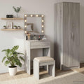 This Dressing Table with LED Lights is a refined piece of modern furniture designed to bring sophistication and functionality to your bedroom setup. With its sleek rectangular shape and clean lines, it merges traditional aesthetics with contemporary style. The surface is a visual delight, featuring textured engineered wood that enhances the decor while providing a practical solution for storage and organization. The plane mirror incorporated into its design adds a touch of elegance, making it perfect for grooming and decoration. Equipped with ample storage spaces, this dressing table is tailored for individuals who appreciate organized and convenient living spaces, ensuring everything you need is beautifully and efficiently stored. Quality Engineered Wood: The primary material is engineered wood, known for its remarkable durability and strength. This textured surface provides a semi-gloss finish, adding a trendy visual appeal to the dressing table. Its ability to withstand wear and tear enhances longevity and reduces maintenance efforts. Ample Storage Options: Equipped with multiple drawers and board shelves, this piece offers extensive storage solutions to keep your essentials neatly organized. The shelves are crafted from high-grade engineered wood, ensuring stability and resilience for a wide range of items. Plane Mirror Integration: A central plane mirror adds elegance and functionality, providing an accurate and distortion-free reflection. Ideal for makeup application, personal grooming, and adding a spacious feel to any room. Easy Maintenance: Designed with your convenience in mind, this table is easy to maintain, requiring only a damp cloth for cleaning. This simple care routine ensures a polished, fresh look daily, enhancing longevity. LED Lighting Feature: Not just visually striking but also practical, these LED lights offer efficient and bright illumination, perfect for detailed tasks like makeup application and daily grooming.