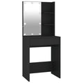 Featuring refined straight lines and an asymmetrical shape brimming with uniqueness, this dressing table is sure to turn heads! Durable material: The engineered wood is of exceptional quality with smooth surface and also features strength, stability and resistance to moisture.LED light: The makeup table has LED bulbs with USB, which are easy to switch modes from warm to cold white. The featured LED bulbs around mirror illuminate your beauty as well.Ample storage space: A spacious drawer and two open shelves on this vanity table give enough storage to organise your items and also make your room tidy and clean. WARNING:In order to prevent overturning, this product must be used with the wall attachment device provided. Note:Each product comes with an assembly manual in the box for easy assembly.