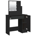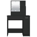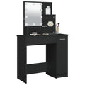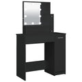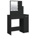 Featuring refined straight lines and an asymmetrical shape brimming with uniqueness, this dressing table is sure to turn heads! Durable material: The engineered wood is of exceptional quality with smooth surface and also features strength, stability and resistance to moisture.LED light: The cosmetic table has LED bulbs with USB, which are easy to switch modes from warm to cold white. The featured LED bulbs around mirror illuminate your beauty as well.Ample storage space: This makeup table has open shelves on the table, a drawer, and a side cabinet, providing ample storage space to keep essentials well organised and within reach. Warning:To prevent it being overturned, this product must be used with the provided wall attachment device.