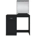 p>Featuring a timeless and refined look, the dressing table with mirror and LED lights is a great addition to your bedroom decor while keeping your cosmetics close at hand! Stable material: The engineered wood is of exceptional quality with smooth surface and also features strength, stability and resistance to moisture. Made of engineered wood, this makeup table is easy to clean.Ample storage space: This vanity table features 1 drawer, 1 compartment, and a spacious tabletop, which provide ample space to keep your cosmetic essentials well organised.Utility mirror: The included beautiful mirror provides a clear view for makeup application and adds an elegant touch to the makeup vanity desk.Adjustable LED lights: This jewellery table has LED lights around the mirror. You can easily switch between 3 light colours (cold, warm, and neutral) and adjust the brightness with the handy controller. Warning:In order to prevent overturning, this product must be used with the wall attachment device provided. Good to know:The product has a USB connector, but the certified 5V USB power source is not included.