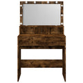 The dressing table is a great addition to your bedroom decor while keeping your cosmetics close at hand! Stable and durable material: Engineered wood is a durable and stable material with a smooth surface that is resistant to moisture, warping, and splitting, making it a reliable choice for a variety of projects.Ample storage space: The makeup table with 2 drawers and 3 compartments offers ample storage space for keeping your various daily essentials well organised and within easy reach.Utility mirror: A beautiful mirror provides the view for makeup application and adds an elegant touch to the vanity desk.LED light: The vanity table has LED bulbs with USB, which are easy to switch modes from warm to cold white. The featured LED bulbs around the mirror illuminate your beauty as well. Warning:To prevent it from tipping over, this product must be used with the provided wall attachment device.
