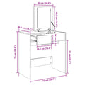 The dressing table is a great addition to your bedroom decor while keeping your cosmetics close at hand! Stable and durable material: Engineered wood is a durable and stable material with a smooth surface that is resistant to moisture, warping, and splitting, making it a reliable choice for a variety of projects.Ample storage space: The makeup table with 1 drawer and 3 compartments offers ample storage space for keeping your various daily essentials well organised and within easy reach.Utility mirror: A beautiful mirror provides the view for makeup application and adds an elegant touch to the vanity desk. Warning:To prevent it from tipping over, this product must be used with the provided wall attachment device.